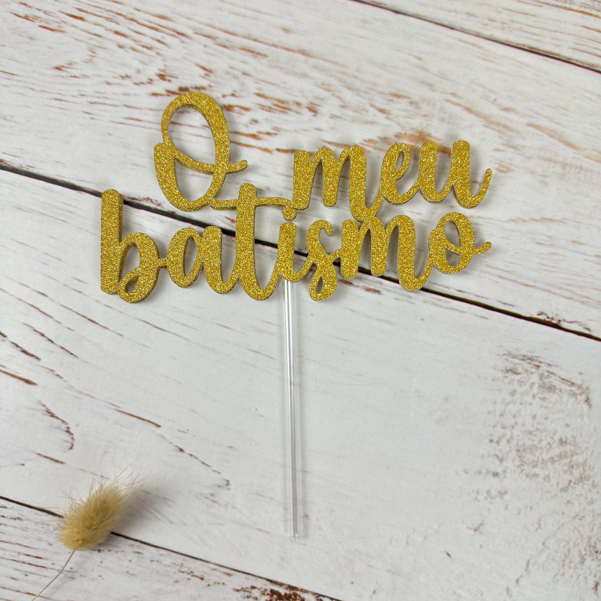 Topo de bolo com "O meu batismo" com duas camadas de papel